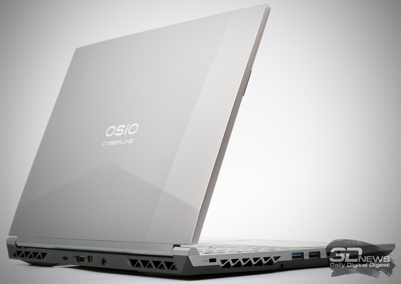 Смотришь на CyberLine C150i-003 — и сразу понимаешь, что перед тобой игровой ноутбук. Такое впечатление складывается во многом из-за необычной выпуклой формы крышки дисплея. Ассоциации лэптопа со спорткаром — очевиднее некуда. Впрочем, излишней вычурности в дизайне «Кибербука» не наблюдается: модель одновременно выглядит строго.