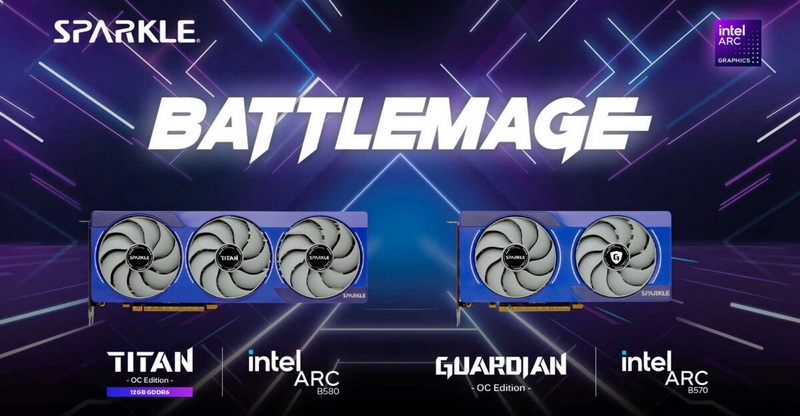 Компания Sparkle представила видеокарты Arc B580 Titan OC и Arc B570 Guardian OC новой серии Intel Battlemage. Новинки отличаются заводским разгоном графических процессоров.