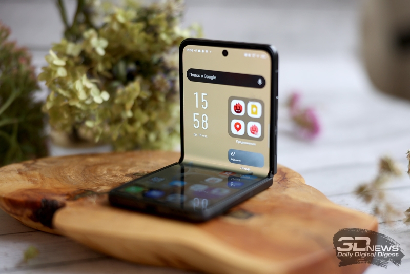 Внешний экран сделан на базе AMOLED-матрицы диагональю 3,64 дюйма и разрешением 1066 × 1056 точек. И он тоже, что удивительно, частотой 120 Гц – это не LTPO-матрица, так что гибкого переключения можно не ждать, но для него это уж точно не критично (особенно с условием, что и внутренний экран гибкостью в этом отношении не блещет). Пиковая яркость заявлена серьезная – 1100 кд/м2. Она труднодостижима – по крайней мере, получить такую цифру при измерениях не получается. Но реальная статическая яркость достаточно высокая, чтобы внешним экранчиком можно было спокойно пользоваться при ярком солнечном свете.