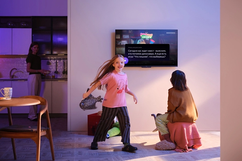 Смарт-функции на основе нейросетей также упрощают голосовое управление телевизором. По данным производителя, голосовой помощник «Алиса» понимает даже те команды, которым её не обучали, а также умеет разбивать сложные запросы на простые и учитывать происходящее на экране. Например, теперь голосовой помощник поймёт просьбы: «Алиса, включи ТНТ и сделай погромче» или «Алиса, выключи телевизор, когда закончится фильм». Кроме того, открывать сайты, прокручивать страницы, искать информацию в интернете и управлять историей поиска теперь можно с помощью голосовой команды — без необходимости использовать пульт или клавиатуру.