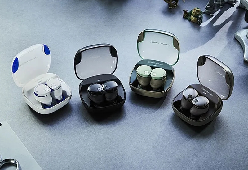 Беспроводные наушники Audio-Technica ATH-CKS50TW2 предлагают до 40 часов работы от батареи с активным шумоподавлением и функцией «Магнитный переключатель», которая автоматически отключает их, когда наушники прикреплены друг к другу с помощью магнитов.