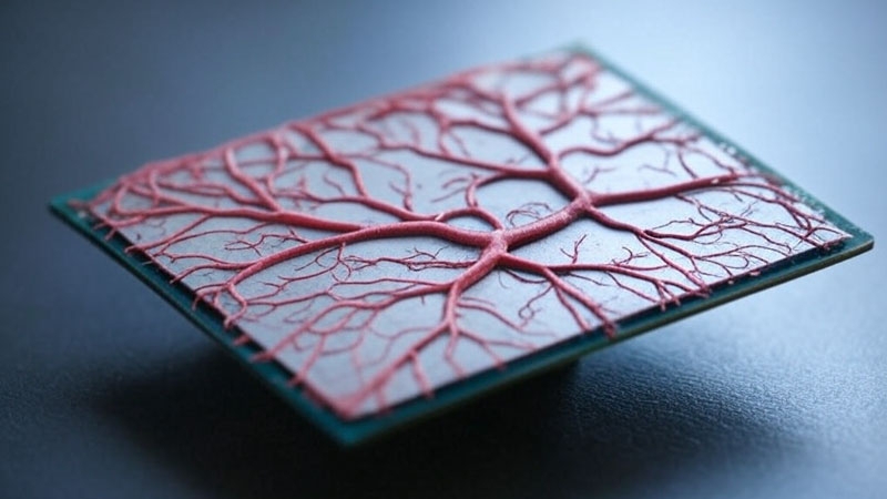 Более того, кремниевые чипы изначально можно проектировать с уникальной структурой «артерий, вен, сосудов и капилляров», что позволит эффективнее охлаждать зоны с высоким тепловыделением и не перегружать системой охлаждения менее нагруженные участки. Это поможет сбалансировать теплоотвод и повысить надёжность работы процессоров.