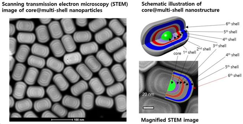 Современные материалы не способны излучать одновременно три основных цвета — красный (R), зелёный (G) и синий (B) — из одной наночастицы. По крайней мере, они не позволяют делать это с высокой интенсивностью, необходимой для яркого и насыщенного изображения. Учёные из KIST преодолели это ограничение, разработав ядро и многослойную оболочку наночастиц, каждый слой которой по-своему откликается на возбуждающий свет в инфракрасном диапазоне.
