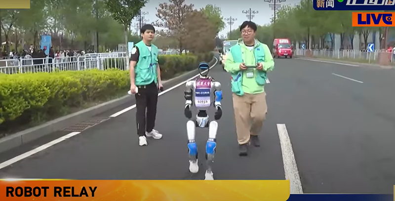 Роботы от китайских производителей, таких как DroidVP и Noetix Robotics, были разных форм и размеров: некоторые ниже 120 см, другие высотой в 1,8 м. Один из роботов начал забег с падения плашмя на стартовой линии, но, пролежав несколько минут, всё же начал движение. Другой через несколько метров врезался в перила, из-за чего сопровождавший его разработчик тоже упал.
