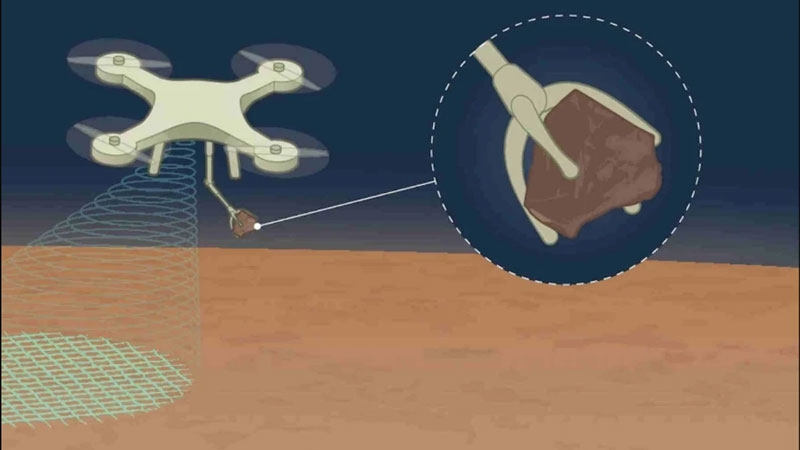 Чуть расширить зону сбора образцов обещал небольшой марсоход, но в новой статье о нём нет упоминаний. Удалённым сбором камней массой до 100 граммов на поверхности Марса теперь будет заниматься вертолёт. Для этого его оснастят манипулятором со своеобразными когтями. Вертолёт сможет отлетать от посадочного модуля на расстояние до 100 метров. На Марс он прибудет в герметичном контейнере.