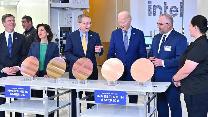 При этом Intel находит поддержку во властных структурах США в своём стремлении возродить передовое производство чипов на территории страны. Правительство готово агитировать крупные американские компании заказывать в производство свои чипы у компании Intel, но одними административными мерами в этой сфере не ограничиться. Intel также удалось заручиться крупнейшей финансовой поддержкой по «Закону о чипах» в размере $11 млрд, которые должны быть направлены на строительство новых предприятий на американской земле, но штат сотрудников она при этом вынуждена сокращать, а от строительства предприятий в Европе отказаться на неопределённое время.